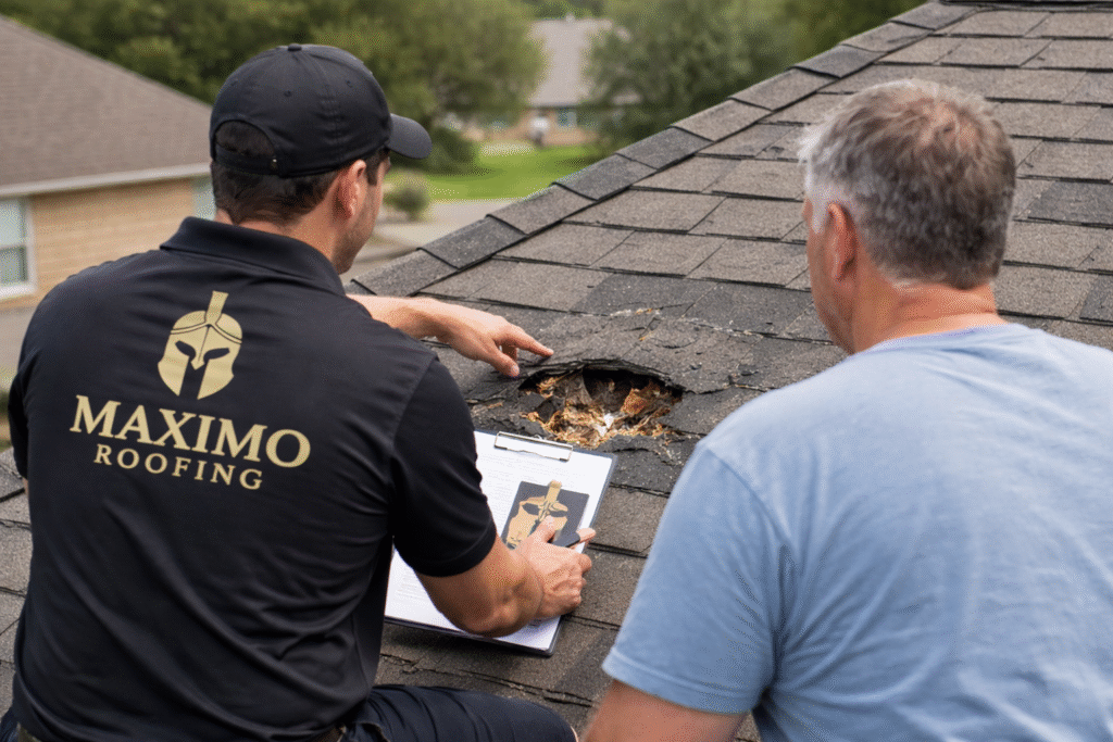 Repairs for roof damage caused by wind, hail, and severe Texas storms.